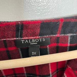 Talbots Long Sleeve Popover Flannel Top Womens 3X Red Black Plaid Cotton
