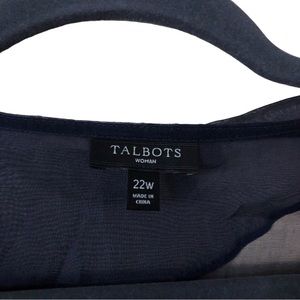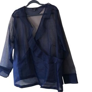 Talbots Long Sleeve Ruffle V-Neck Sheer Crepe Wrap Blouse Women's Plus 22W Blue