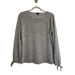 Talbots Long Sleeve Top w/ Tie Bracelet Sleeves Size M Gray Silver Metallic