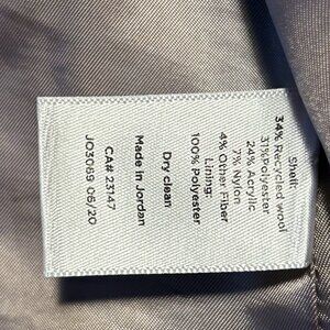 Material: 34% Wool, 31% Polyester, 24% Acrylic, 7% Nylon; Lining 100% Polyester