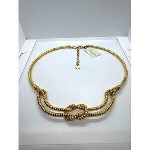 Talbots Love Knot Collar Choker Gold Tone Rope Chain Necklace Double Strand