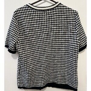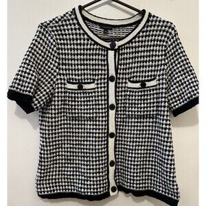Talbots M Black White Houndstooth Short Sleeve Knit Button Front Cardigan Top