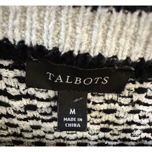 The Talbots M Black White Houndstooth Short Sleeve Knit Button Front Cardigan Top is a stylish and versatile sweater perfect for all seasons. Made from a blend of nylon, spandex, and cotton, this lightweight cardigan features a round neck, short sleeves, and button accents. The black color with white houndstooth pattern adds a touch of sophistication, while the regular fit makes it comfortable and easy to wear. Ideal for winter, fall, and spring, this cardigan is a must-have for any woman's wardrobe.