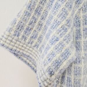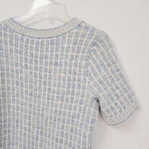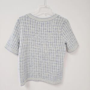 Talbots blue plaid with metallic sequin detail sweater top, short sleeve, light stretch