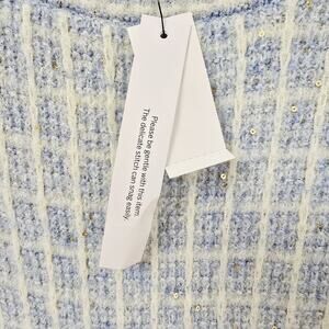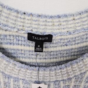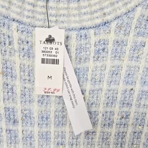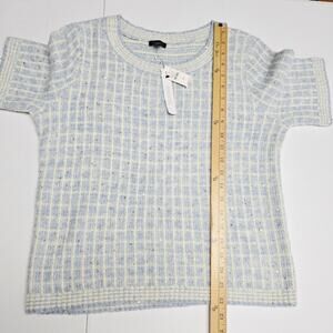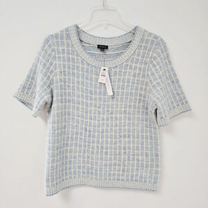 Talbots M Crewneck Sweater Sequin Plaid Blue Short Sleeve Preppy Academic NWT