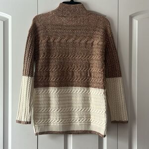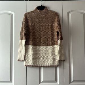 Talbots MARL BLOCK CABLE KNIT MOCKNECK SWEATER Size Petite Small