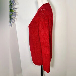 Talbots, MP, alpaca wool blend, cranberry red crewneck, longsleeve, stretchy extremely soft open knit fare isle design sweater