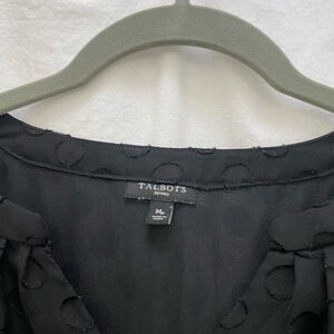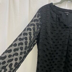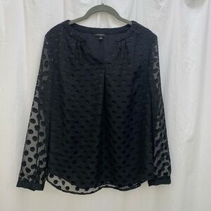 Talbots MP lined black polka dot long sleeve sheer lined blouse.