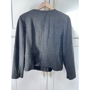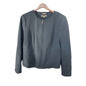 Talbots Mandarin Collar Zip Blazer Womens 14 Gray Italian Fabric Herringbone