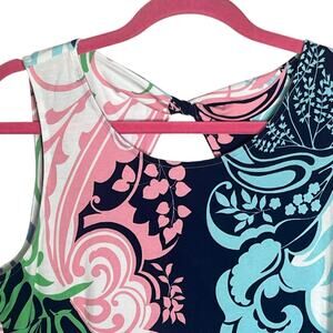 Talbots Maxi Dress L Petite Sleeveless Paisley Print Twist Back Keyhole Stretch