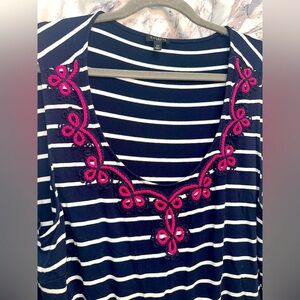 Talbots Maxi Dress Navy White Stripe Nautical Sleeveless pink Coastal Grandma