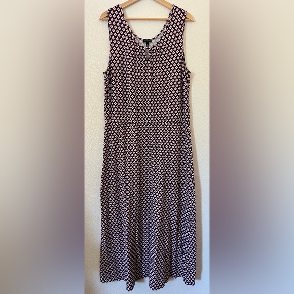 Talbots Maxi Dress Navy and Pink tiny flower design