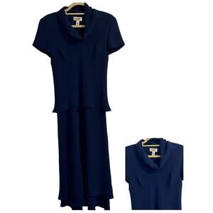 Talbots Maxi Dress Size 6 Petite Navy Blue Tailored Cowl Neck