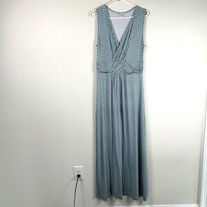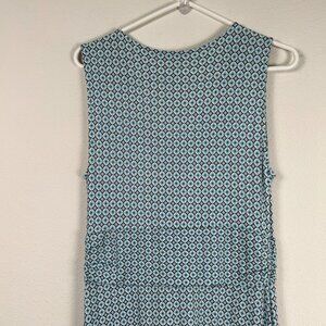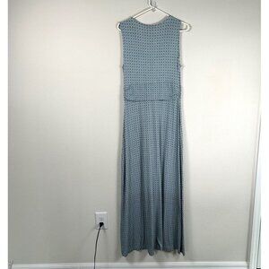 Talbots Maxi Dress Womens Size M Blue Geometric V Neck Sleeveless Stretch