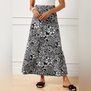 Talbots Maxi Skirt NWT Etched Paisley Jersey Fabric Flowy Pull-On Size 1X