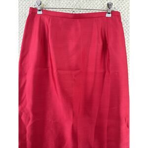 Talbots Maxi Skirt Women 10 Red Pure Silk Straight Fully Lined Back Slit Zip