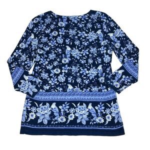 Talbots India Ink Medallion Bird Toile Knit Sweater Top