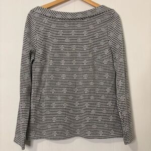 Talbots Medium Jacquard Dot Houndstooth Knit Bateau Neck Sweater Top Black/White