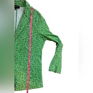 Talbots Medium Knit Blazer Green Pastel Floral Jersey Jacket with Pockets Size 14