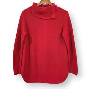 Talbots Medium Split Cowl Neck Shaker Stitch Sweater Cotton Blend Cranberry Red