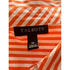Talbots Medium Womens Blouse Button Up Striped Orange White Short Sleeve