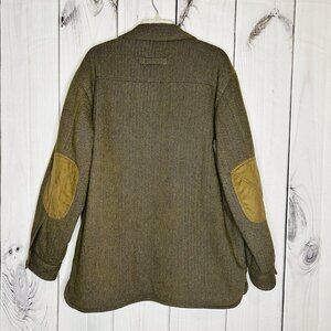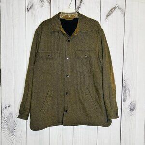 Talbots Mens Wool Blend Coat Sz M Brown Herringbone Fleece Lined Elbow Patches