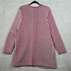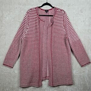 Beautiful woven knit open front cardigan in a red and white color. A little bit of a longer length. In good pre owned condition.