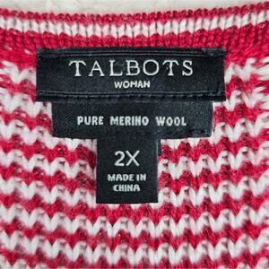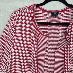 Talbots Merino Wool Cardigan 2X Red Open Classic Preppy Sweater Woven Holiday