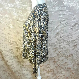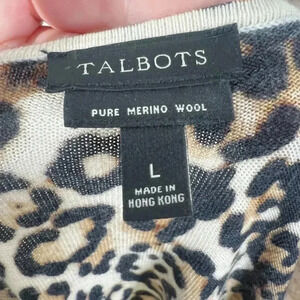 Talbots Merino Wool Leopard Print V Neck Sweater Size L