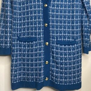 Talbots 100% Merino Wool Long Cardigan Blue Plaid Button Up