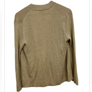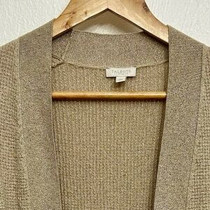 Talbots Metallic Gold Waffle Knit Open Front Cardigan Size Large Petite