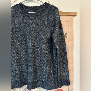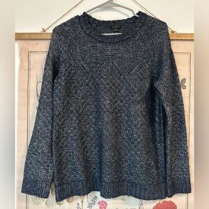 Talbots Metallic Knit Fuzzy Long Sleeve Navy Silver Sweaterer Crew Neck Medium