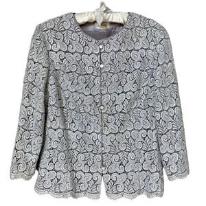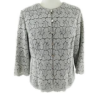 Talbots Metallic Silver Gray Floral Lace Button Dressy Formal Jacket Blazer 10