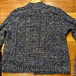 Talbots Metallic Tweed Mock NeckCardigan Sweater Denim Silver Petite M