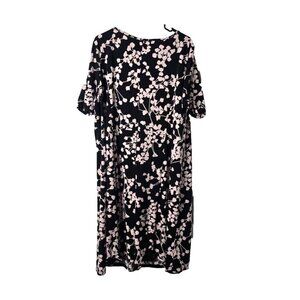 Talbots Midi Dress 3XP Dress Floral Bloomcore Half Sleeve Flowy Boho Black Pink