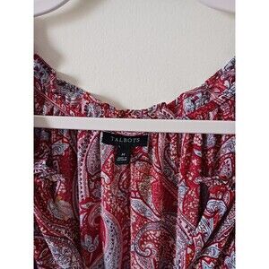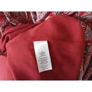 Talbots Midi Dress Fit Flare Smocked Waist Paisley Boho V Neck Long Sleeve Red M
