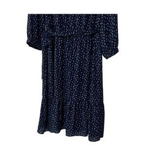 Talbots Midi Dress Size 10 Anchor Nautical Flounce Hem Split Neck Belted Navy