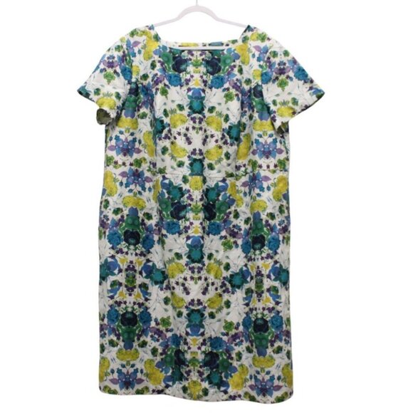Talbots Midi Dress Size 22W Floral Multicolor Colorful Cotton Linen Lined Formal