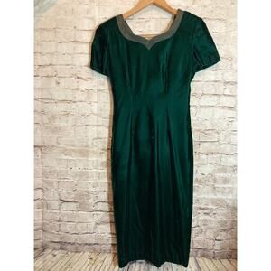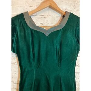 Talbots Midi Dress Womens 4 Petite Emerald Green Velvet Romantic Bow Detail