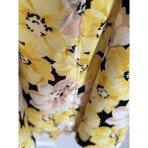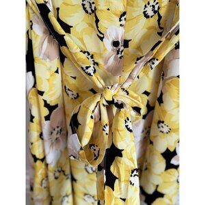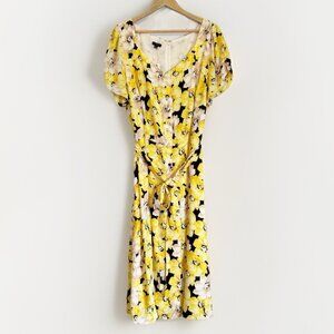 Talbots Midi Dress Women's Plus 20W Yellow Crepe Pippy Poppies Floral Tie Waist
