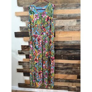 Talbots Midi Floral Colorful Blue Green Pink Tropical Chiffon Dress size 16W