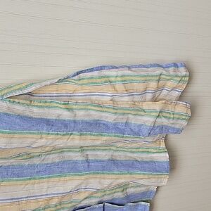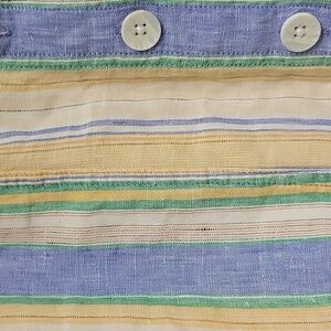 women's sz 12 Talbots striped midi swing skirt 100% linen. front button, side slits, front pockets. 34" waist, belt loops, 38" overall length, 16" slits up sides of skirt (SK-051)