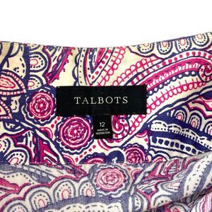 Talbots Midi Skirt Womens 12 Pink Paisley 100% Cotton Flowy Boho Career