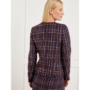 Talbots Midnight Sparkle Tweed Jacket Purple Button Front Long Sleeve Sz 16