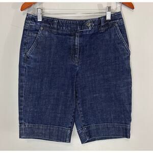 Talbots Midrise Stretch Dark Blue Cotton Spandex Denim Bermuda Jean Shorts Sz 4