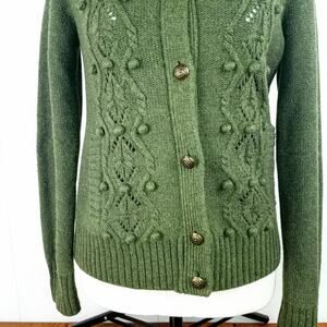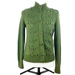 Talbots Military Style Knit Cardigan Olive Green SP Long Sleeve Aglets
