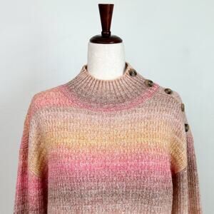 Talbots Mock Neck Button Detail Ombre Knit Sweater NWT