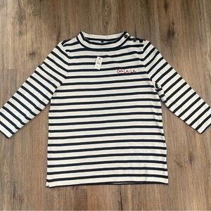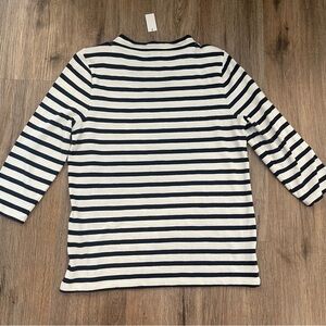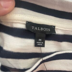 Talbots Mock Neck Button Shoulder Tee Women’s Med Navy Striped Nautical Preppy