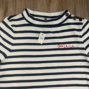 “Ooh la la” embroidered on the chest with red thread