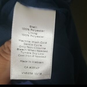 Navy blue florals. 3/4 sleeves. Has a faux tie at the end of each sleeve. Hidden zipper closure in back. Scalloped around the neck. Body is lined. Excellent condition. Office, workplace, professional, interview, classy, dressy, mature, garden, event, church, gathering, mobwife, wedding guest, cottage, botanical, business, fall, autumn dinner, date night